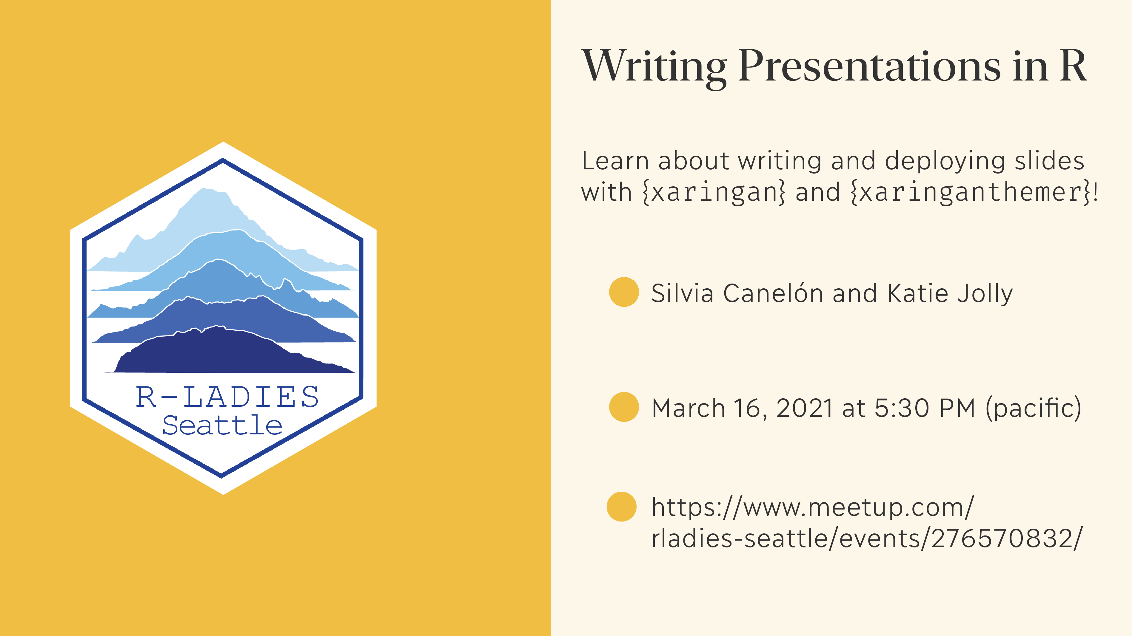 Package demonstration for R-Ladies Seattle showing how to make beautiful slides with xaringan and how to deploy them.